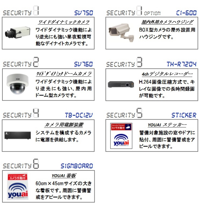 | ご契約先にカメラシステムをレンタル設置。防犯カメラが設置されていることで、犯罪をしようとするものに「見られている」という意識を働かさせ、犯罪を諦めさせたり・途中で断念させたりと抑止を促します。また、万が一事件が発生した際には、デジタルレコーダーに記録されたデータから犯人を特定するための現場の状況確認ができたりと、お客様の不安や心配を「目で見て」解決します。 |