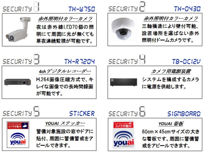 | ご契約先にカメラシステムをレンタル設置。防犯カメラが設置されていることで、犯罪をしようとするものに「見られている」という意識を働かさせ、犯罪を諦めさせたり・途中で断念させたりと抑止を促します。また、万が一事件が発生した際には、デジタルレコーダーに記録されたデータから犯人を特定するための現場の状況確認ができたりと、お客様の不安や心配を「目で見て」解決します。 |